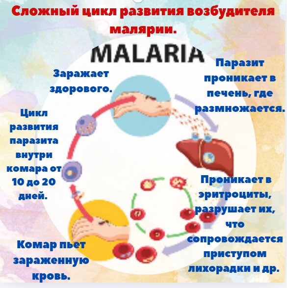 Малярия - это группа инфекционных заболеваний, вызываемое паразитами рода Рlasmodium, передаваемых человеку при укусах комаров рода Anopheles («малярийных комаров») и сопровождающихся лихорадкой, ознобами, увеличением печени и селезенки, анемией.