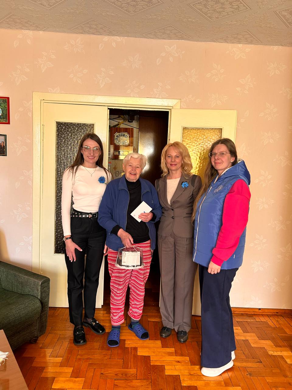 01.10.2025 работники поликлиники совместно с главным врачом поликлиники Авраменко Викторией Владимировной посетили с визитом и поздравлениями пенсионера Центрального района г.Минска!